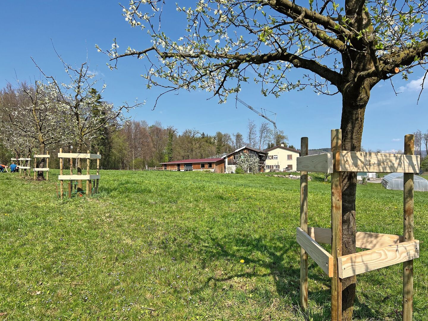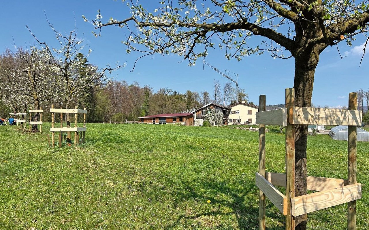 Die Zwetschgenbäume auf der Kuhweide sind seit dem 14. April eingezäunt.