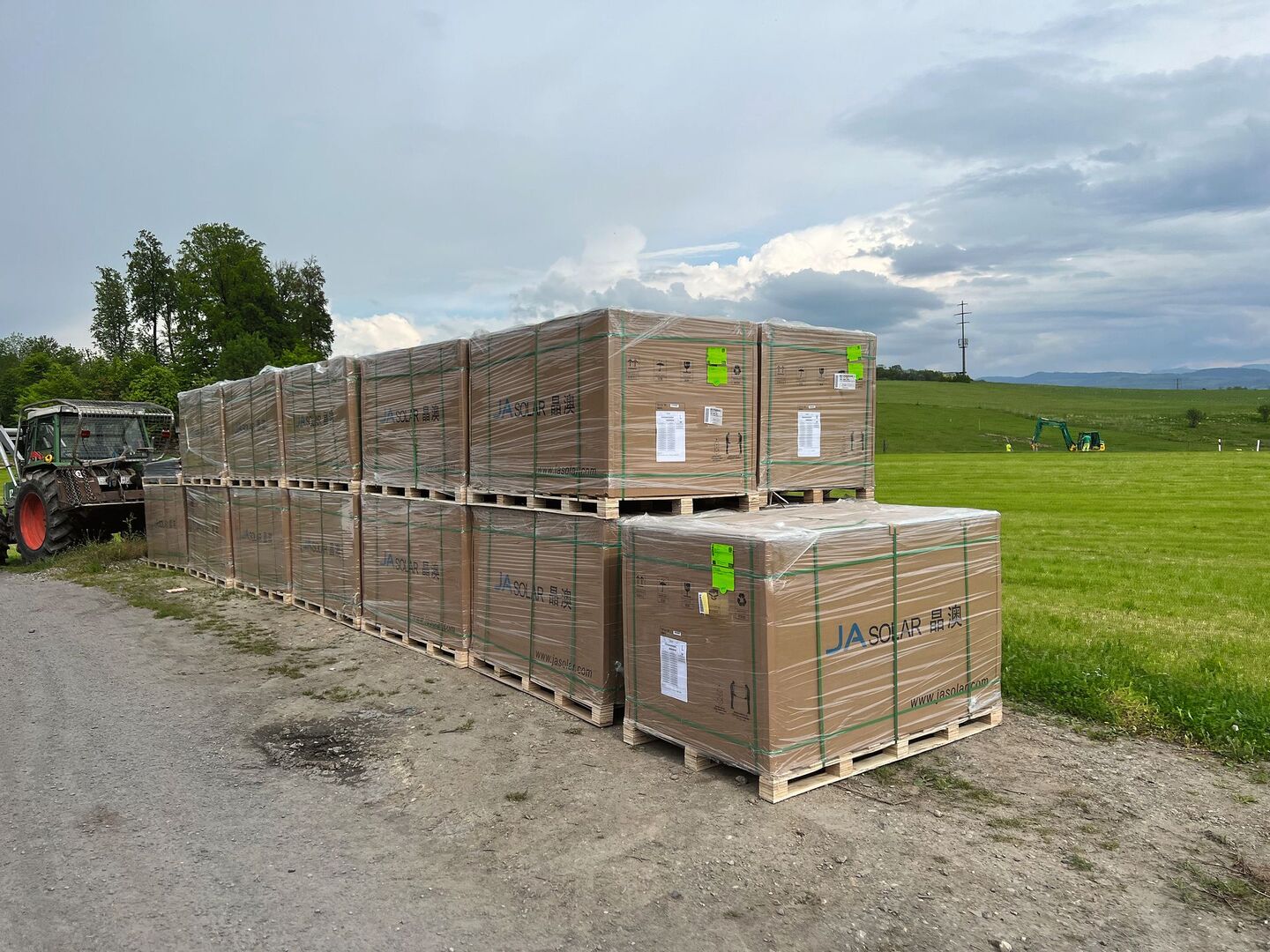 Am 3. Mai wurden die Module für den Ersatz der Solaranlage angeliefert.