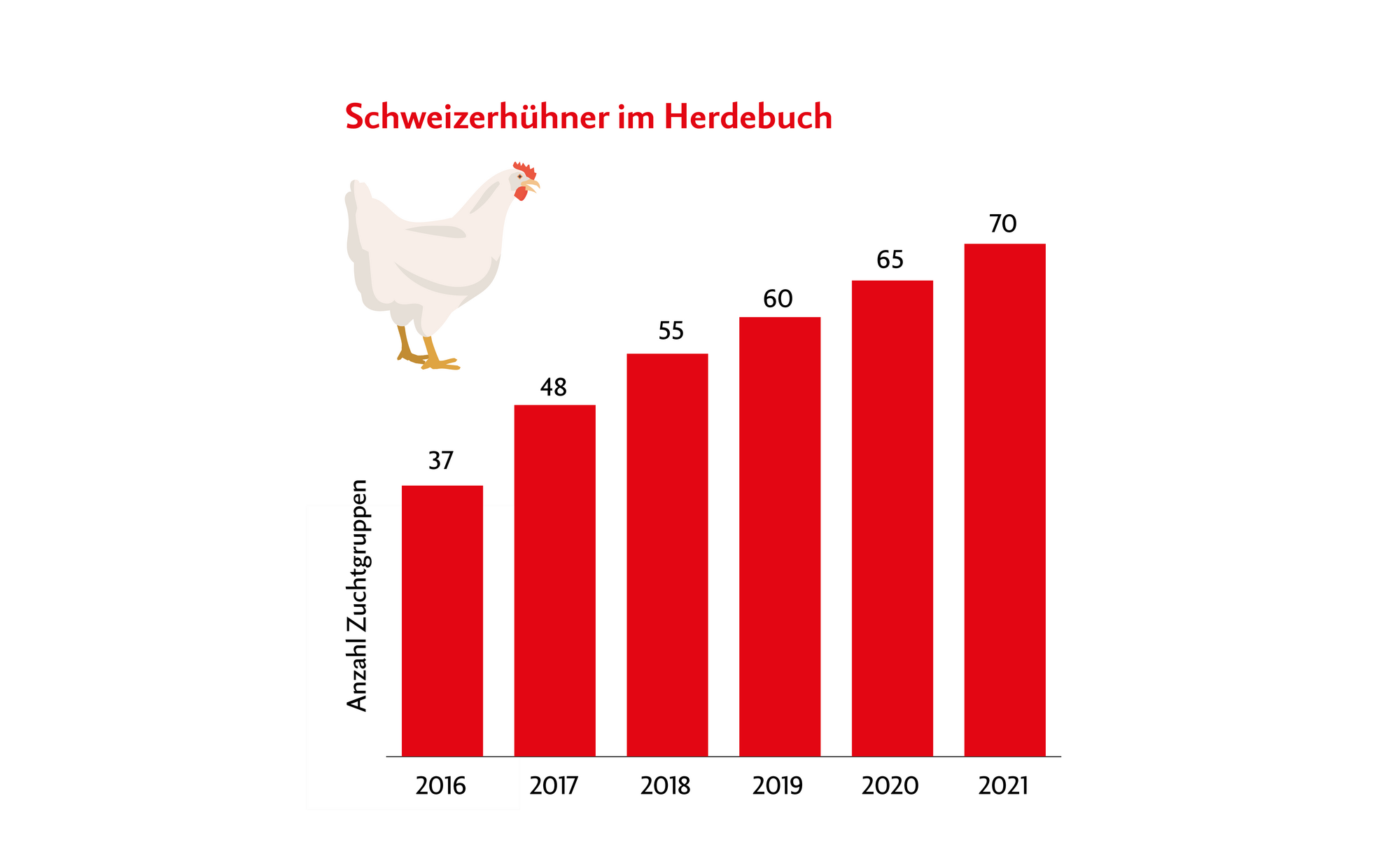 In den letzten Jahren nahmen die Anzahl Zuchtgruppen und auch die Anzahl ZüchterInnen stetig zu. Eine Entwicklung der genauen Tierzahlen ist schwierig zu beziffern – zumal 2020 eine Umstellung der Erfassung auf ein neues Herdebuch erfolgte.