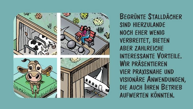 Wir zeigen vier praxisnahe und visionäre Anwendungen für begrünte Stalldächer. Hierzulande sind sie noch wenig verbreitet, bieten aber zahlreiche interessante Vorteile.
