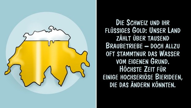 Die Schweiz und ihr flüssiges Gold: Unser Land zählt über tausend Braubetriebe – doch allzu oft stammt nur das Wasser vom eigenen Grund. Marco Ratschiller/Karma hat einige hochseriöse Bierideen, die das ändern könnten.